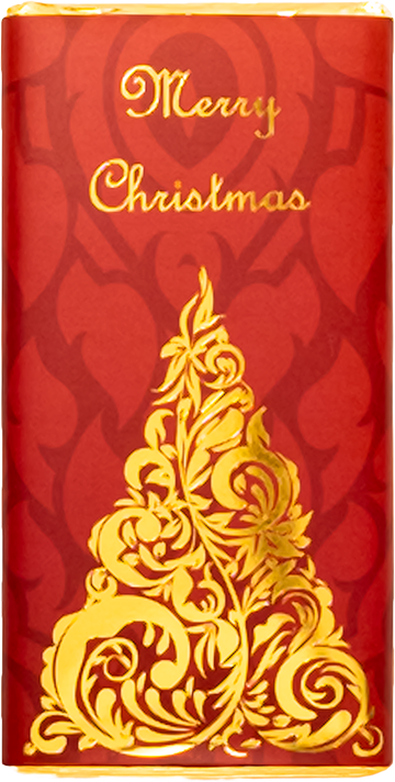 Thai chocolate bars wrapped in foil and packaged in Merry Christmas wrapper, Minimum order 10 bars