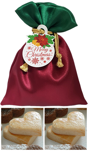 CKX-24: Red and green Merry Christmas pouch filled with 2 Christmas cookies, ( 2 Mailanderli).