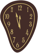 NYCLOCK-1d: Fancy dark chocolate clock with graphic in gold color. 2.5×3.5 cm, 2 mm T, 50 pc/box, shelf life: 9 months.