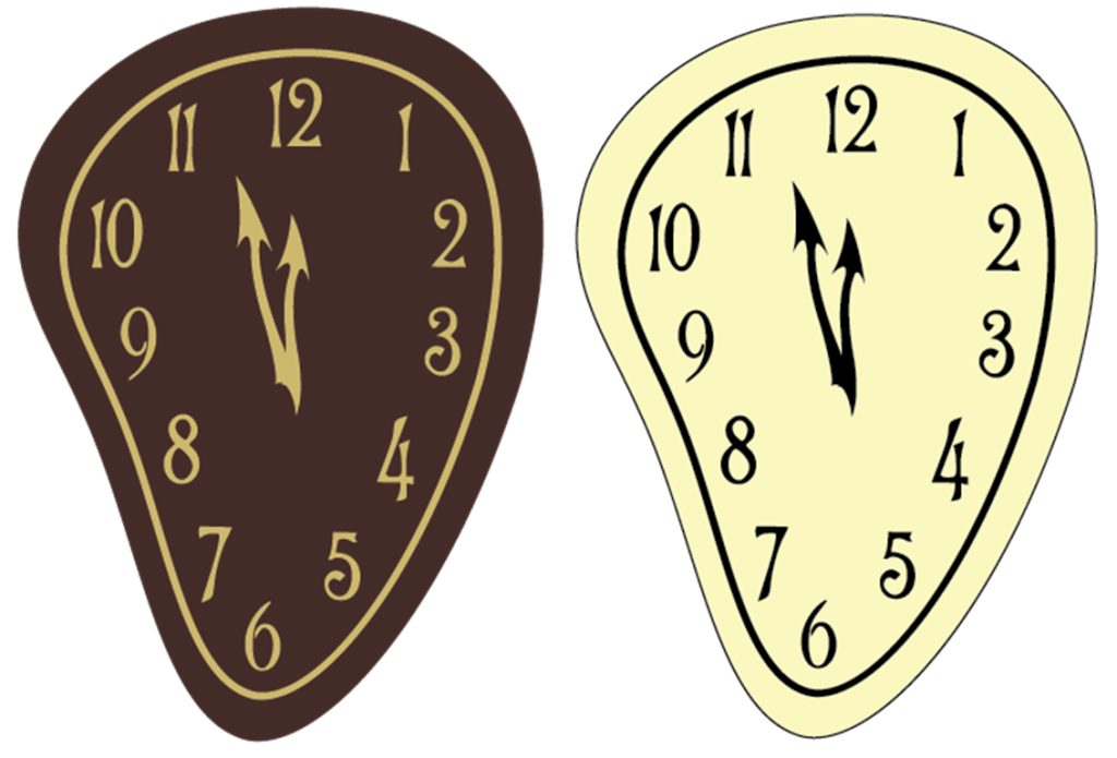 NYCLOCK-2set: Fancy dark and white chocolate clock with graphic. 5.7×8 cm, 2 mm T, 30 pc/box (15 each), shelf life: 9 months.