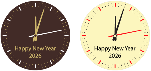 X-124set: Set of dark and white chocolate round with Happy New Year clock graphic in black & red color. 4 cm D, 2 mm T, 50 pc/box (25 pc of each), shelf life: 9 months.