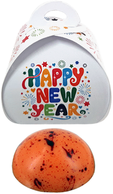 NEWY-14: Happy New Year box with 4 chocolate bonbons. 8x8x 2.5 cm, shelf life: 45 days.
